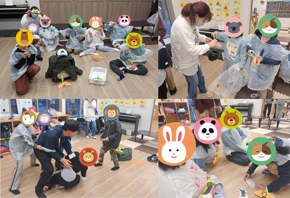 10月31日はハロウィンを楽しみました!自分たちで制作したおばけの仮装をした子ども達。「おばけ、こわーい!」「その衣装可愛いね!」と、嬉しそうに衣装を見せ合う姿がとても微笑ましく、笑顔と歓声でいっぱいになりました!また、「トリック・オア・トリート!」の合言葉でお菓子をもらう体験では、少し恥ずかしがりながらも、勇気を出して言えた子もおり、達成感に満ちた表情が印象的でした!!