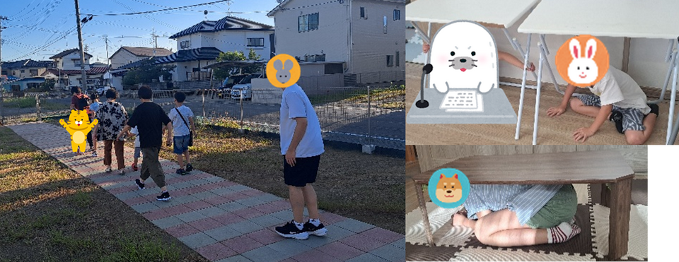 9月26日(金)、べりるらんど、こらんだむの森合同で地震・津波を想定した避難訓練を行いました。合図と共に、「ダンゴムシポーズ」で身を守り、地震が収まった後に児童指導員と手を繋いで車内へ乗り込むところまで行いました。初めての訓練でしたが、落ち着いて行動することができ、有意義な時間を過ごすことができました。
